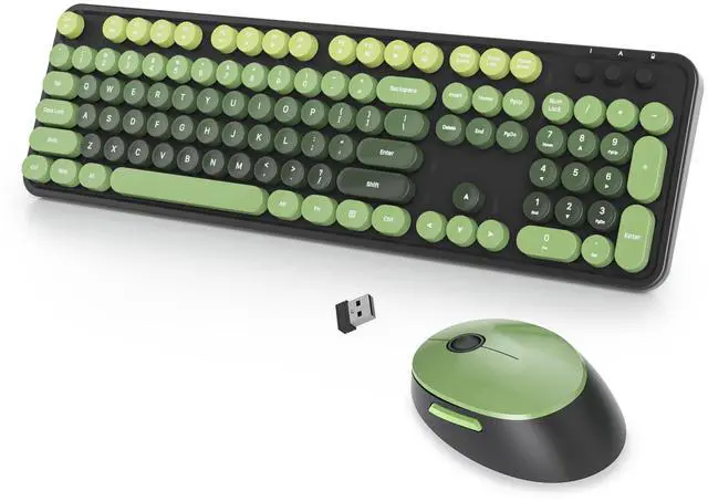 SbocKeeb Wireless Keyboard and Mouse Set, Retro Typewriter, 2.4GH z Full Size 104-Key Cute Keyboard with Number Pad, Colorful with Round Keycaps for Windows PC Laptop (Dark Green)