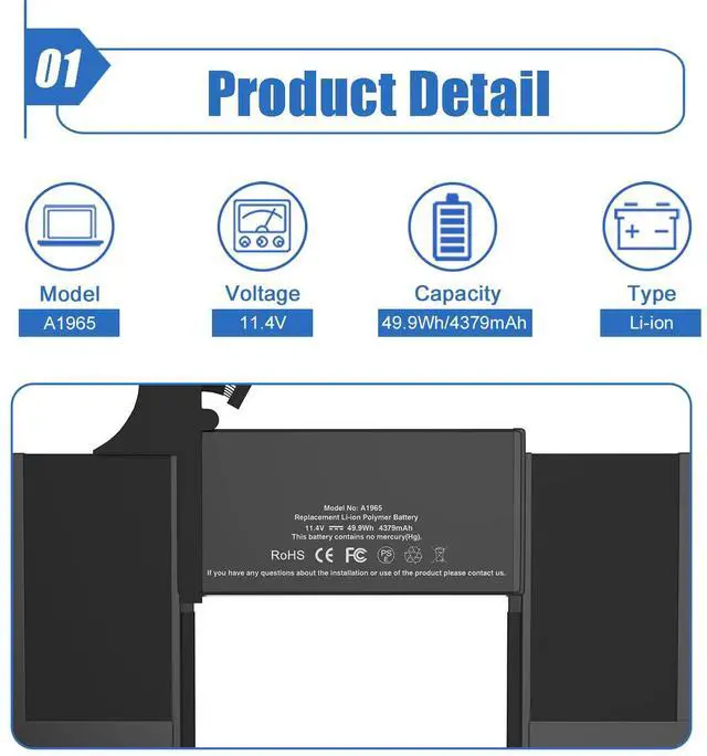 Dentsing A1965 Laptop Battery Replacement for MacBook Air 13" Retina A1932 (2018-2019) A2179 2020 (EMC 3184 3302), Laptop Battery A1965 11.4V 49.9W h 4379mAh
