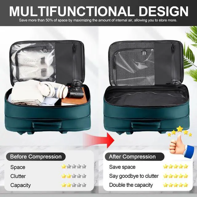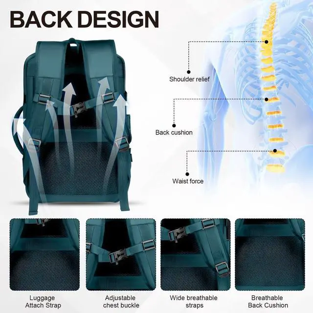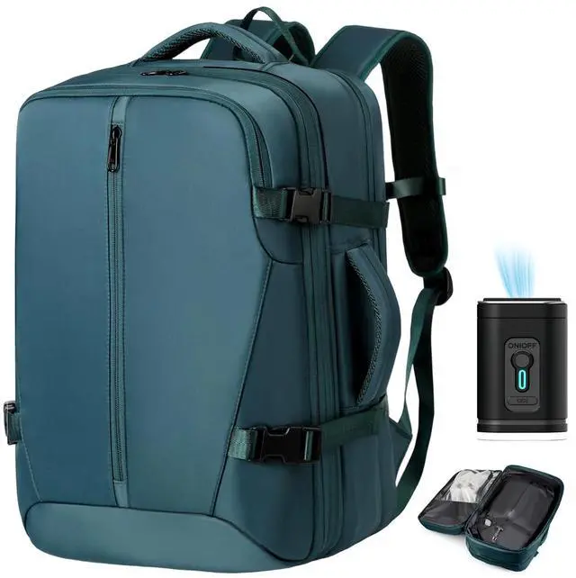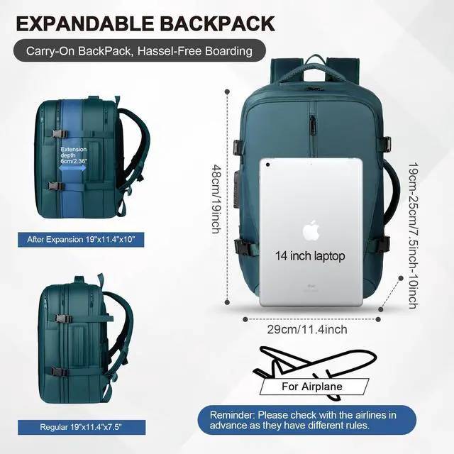 Carry-On Size & Expandable DesignThe daily size of vacuum travel backpack is 19 x 11.4 x 7.5 inch, the depth can be expanded to 10.5inch, which remains a CARRY-ON size to ensures hassle-free airline boarding and eliminates extra baggage fees. TSA approved combination lock keeps your belongings safe and secure