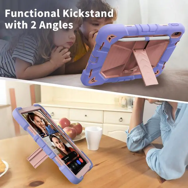 Kenke Case for iPad 11/10th Gen 2024 M4/2022, Heavy Duty Military Grade Shockproof Rugged Full Body Protective 11/ 10.9 Inch Cover with Built-in Kickstand & Pencil Holder for iPad 11/10 Gen (Pink+Purple)