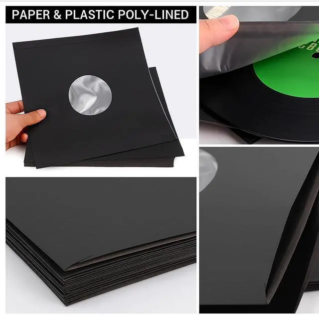 200 PCS 12 Inches Black Paper & Poly Lined Record Inner Sleeves for LP Vinyl Records, 110gsm Paper 33 RPM Record Sleeves, Anti Static Record Storage Album Covers LP Vinyl Jacket Covers (200)