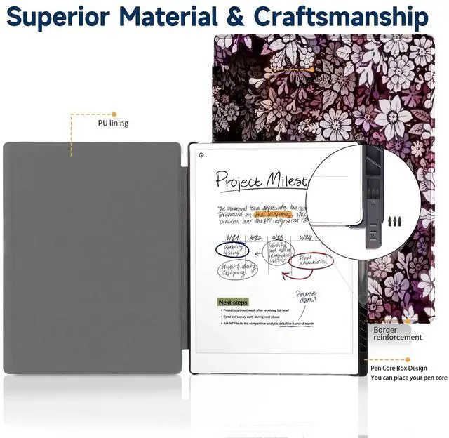 Premium MaterialsHigh quality premium faux leather case with fully comprehensive screen protection, prevent from scratches and daily damageproviding a firm grip and guaranteed durability,We have increased the reinforcement shape in the protective case, Make Remarkable Paper Pro case more durable.