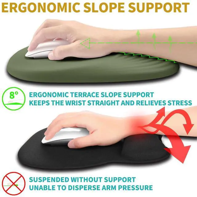 Ergonomic Stepped-wedge SlopeThe innovative ergonomic slope combines perfectly with the stepped wedge design. Effectively supporting the wrist and palm to alleviate pain and fatigue, improve carpal tunnel syndrome (CTS), strengthen air circulation between the wrist and mouse pad, prevent sweating, and keep the wrist in the most comfortable state.