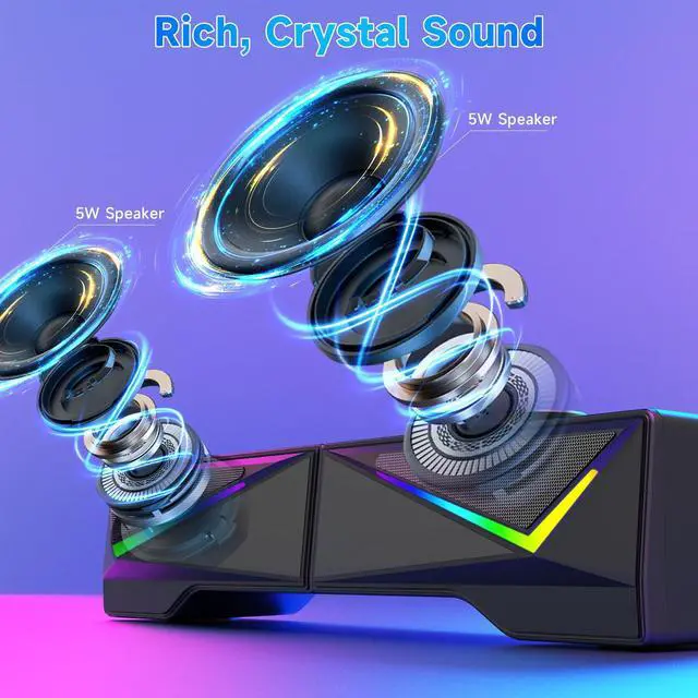 2-in-1 Detachable Speaker - You can combine or separate the speakers by sliding the top rail, personalize the desktop according to your preferences.