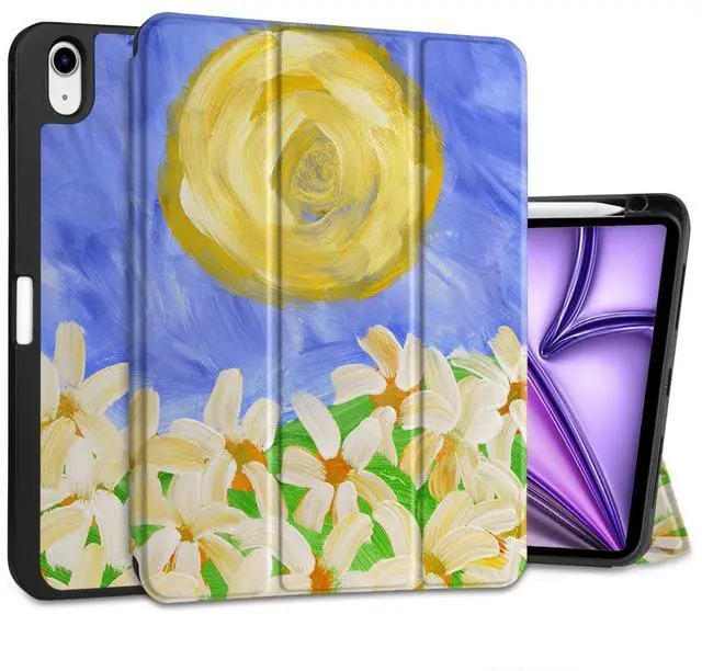 MEEgoodo Case for iPad Air 11 inch (M3) 2025/ (M2) 2024, Cover for iPad Air 5th Generation/iPad Air 4th Generation 10.9 inch 2022 2020, Tablet Cases with Pencil Holder, Summer Flowers