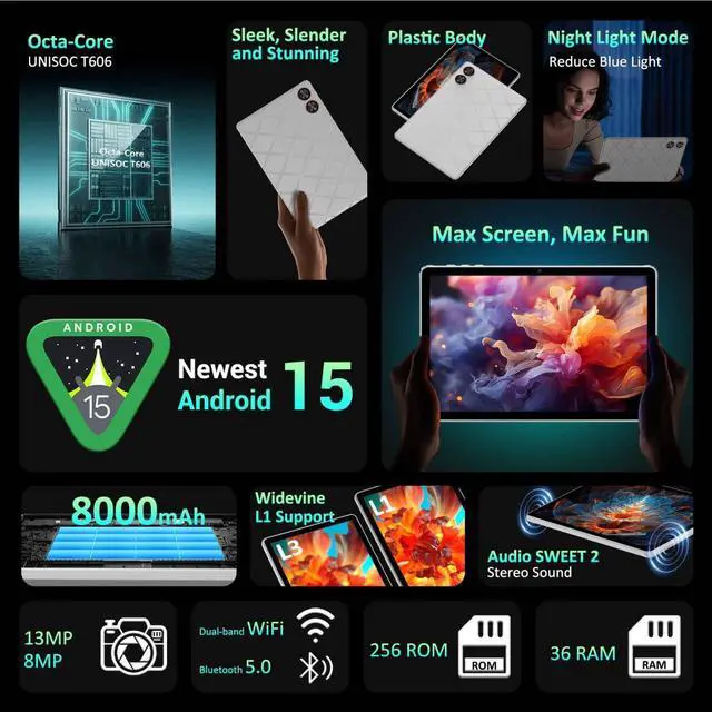 2025 Android 15 TabletExperience the future with Android 15 and a powerful Octa-Core processor (up to 1.6GHz). Perfect for multitasking, gaming, streaming, and creative work.