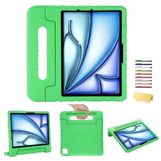 UUcovers Kids Case for iPad Air 11-inch M3/M2 (2025/2024) & iPad Pro 11 inch M4 (2024) with Pencil Holder/Kickstand, Lightweight Anti-Slip Handle Stand Soft EVA Foam Shockproof Rugged Cover, Green