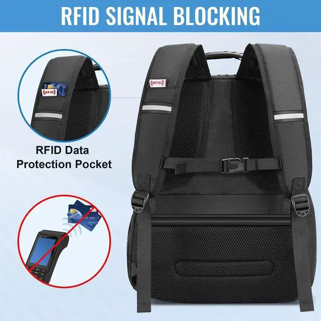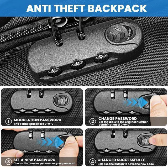 Anti Theft Backpack With Lock: This work backpack for men with lock stays secure on the go with multiple anti-theft features, including a built-in password lock, anti theft travel backpack with hidden pocket, dedicated Air Tag Pouch, and an RFID Blocking backpack to protect your cards and personal data from electronic theft. Whether you're commuting or traveling, this mens laptop backpack keeps your valuables safe and easily accessible