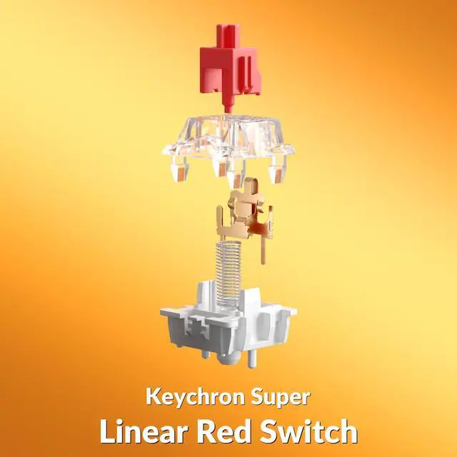Keychron Super Red Switch: This linear switch delivers a smooth, quiet typing experience with no tactile bump, perfect for fast typists and office environments.