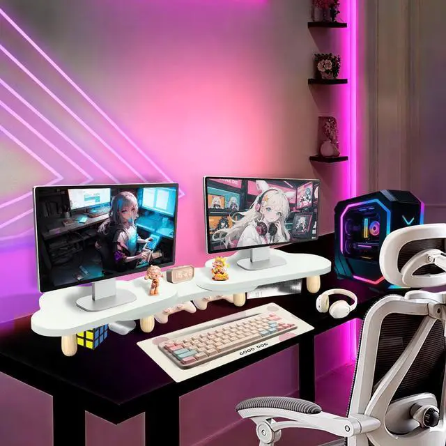 Monitor Stand Riser, Desktop Computer Stand for Desk Small Monitor Stand TV/Screen/PC/Laptop Riser Computer Stand Desktop Shelf, Desk Organizers and Accessories, Pink Desk Organizer (White, Dual)