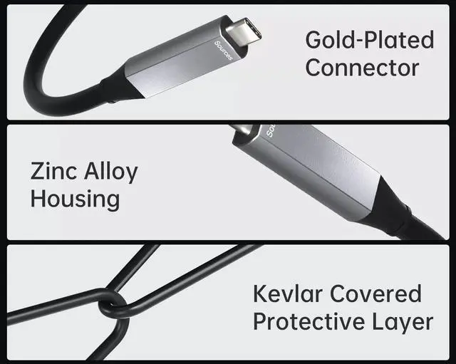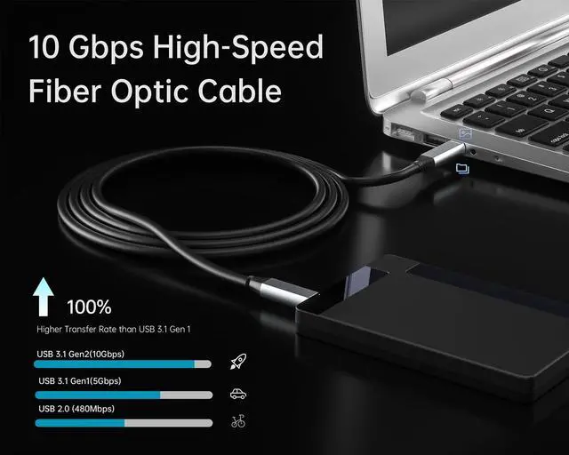 All-in-One Fiber USB C Cable: Supports 10Gbps data transfer, 60W power delivery, and 4K@60Hz 8K@60Hz video output via 2-lane DP 1.4. Fiber optic technology ensures zero data loss and zero EMI for seamless productivity.