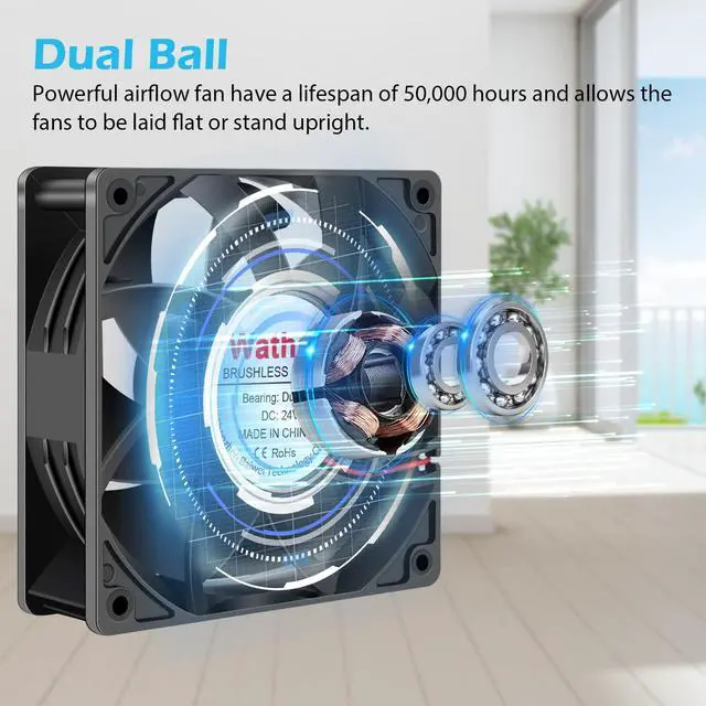 Wathai 120mm x 38mm Replacement 24V Fan Dual Ball High Volume 180CFM for DIY UPS Case, Amp, RV Fridge, Plasma Cutter, Industrial Equipment Cooling