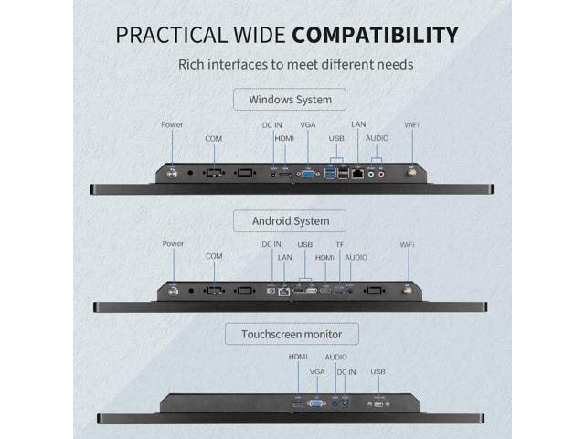 - Plug and Play & Multi-Interface: this capacitive touchscreen all in one PC have 2x USB, HD-MI-Port, TF/SD card slot, Lan & WiFi, built in speakers and headphone, great for listening to music, watching video and playing games, used for POS system, industrial monitor, CCTV monitor etc