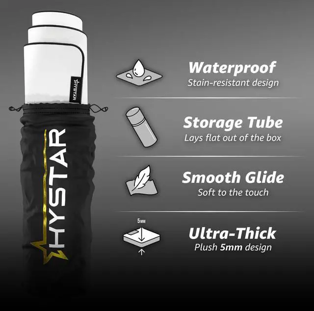 Hystar® Extended Gaming Mouse Pad ^^ XXL 36" x 16" ^^ 5mm Thick, Waterproof Surface, Smooth Polyester Fabric, and Natural Rubber Base ^^ Classic White