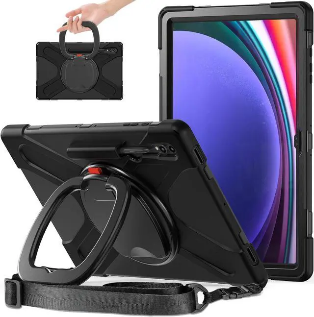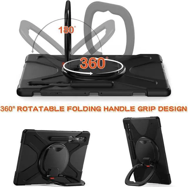 360 Rotation Case for Samsung Galaxy S9 Ultra 14.6" Sturdy Cover Rotate Ring Stand Shoulder Carrying Strap Hand Strap Rugged Children Adults Outdoor Case