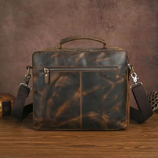 Top Quality MaterialThis briefcase is made of water-resistant durable canvas and top quality genuine crazy horse leather trim.The premium quality ensure the long lasting durability.The high density canvas is made of pure cotton, crafted with a tight double-knit weave,it's strong, hard-wearing, scratch-resistant. The crazy horse leather is made of high-end top layer cowhide material, with a thickness of 2.5mm, which is solid and durable.And the quality solid hardware wont gather rust easily.