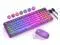 Purple Light Up Keyboard and Mouse Wireless,Cute 2.4Ghz Cordless Rechargeable Transparent Backlit Keyboard,15 Backlight Effects,Volume Knob,RGB Mouse with 3 DPI for Mac Computer PC Laptop Desktop iPad