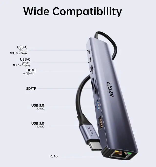 Biaze 8-in-1 USB-C Hub for MacBook Pro with 4K HDMI Adapter, Supporting 100W PD Fast Charging, 100Mbps Ethernet, 2 USB 3.0 Ports, and SD/TF Card Reader. Compatible with MacBook and Type-C laptops.