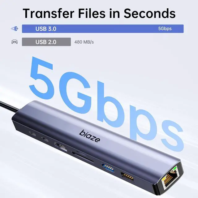 8-in-1 USB C Hub & Ultra-Fast Data Sync This advanced Type-C Adapter serves as a powerful expansion center for your laptop. Experience blazing-fast file transfers at speeds up to 350MB/s with the USB 3.0 ports, moving a 1GB file in roughly 3 seconds. The integrated SD and TF Card Reader allows photographers and creators to effortlessly access media from cameras and drones, significantly boosting productivity.
