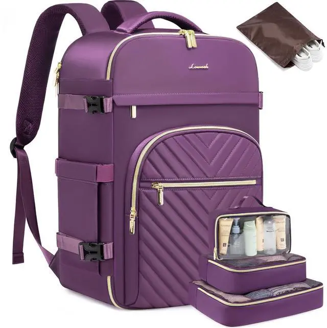 LOVEVOOK Large Travel Backpack for Women, TSA Carry on Backpack for Airplanes, 40L Personal Item Travel Bag fits 17" Laptop, Waterproof Carry on Bag Flight Approved with 4 Packing Cubes