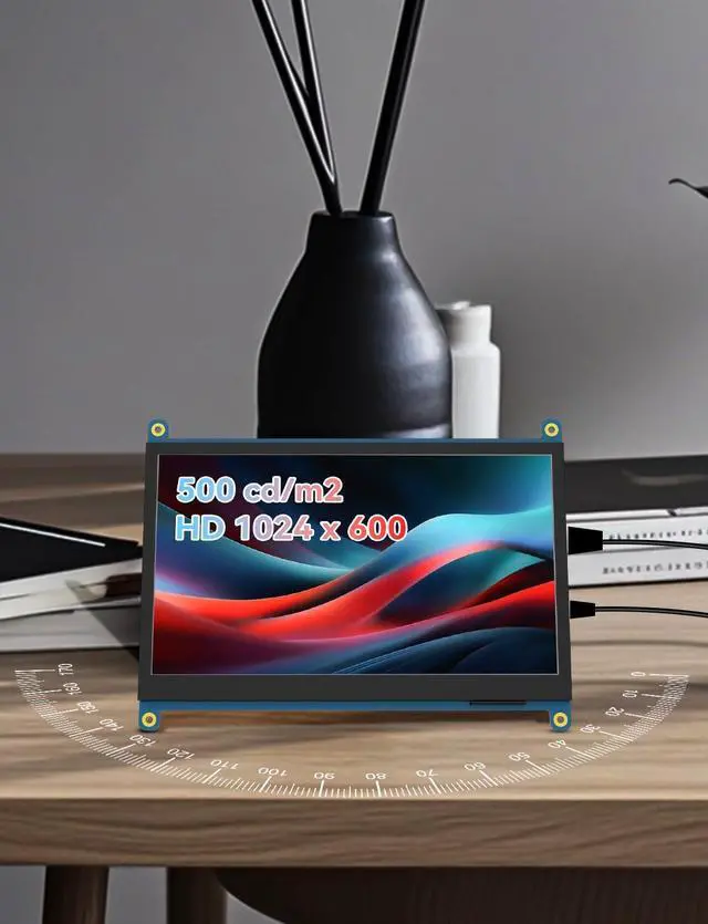 JUN-ELECTRON 7 inch Mini Monitor, HDMI IPS Display 1024x600 Capacitive Screen for Raspberry Pi/Laptop/PC/Windows 11/10, Non-Touch