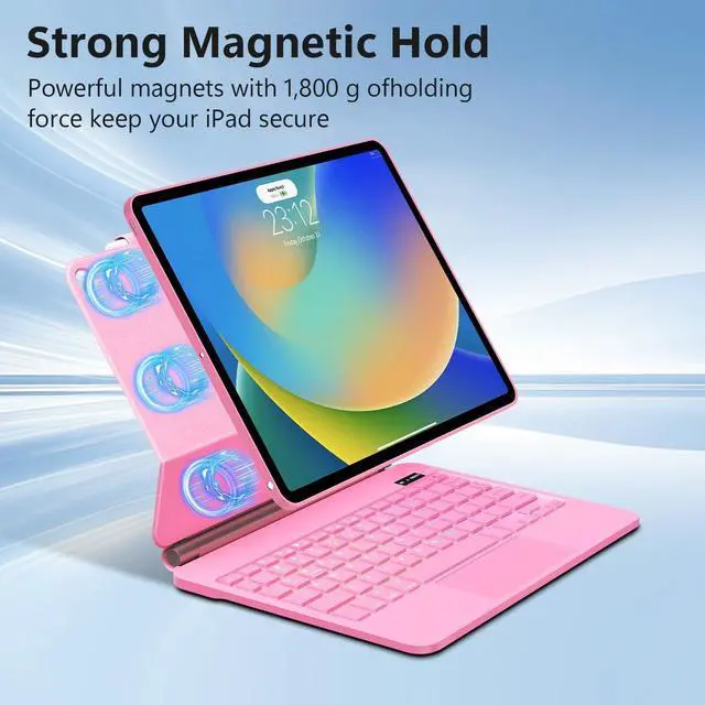 Keyboard Case for iPad 10.2/Pro 10.5 with Easy-set Magnetic Stand : The unique floating cantilever design, Innovative and intuitive, the floating cantilever design of the Edge allows for effortless adjustment to your preferred viewing angle. Whether youre presenting a slideshow, watching your favorite show, or reading a book, this flexible design ensures you get the perfect viewing angle every time. The ability to flip and rotate the iPad easily transforms it into a mini-compu