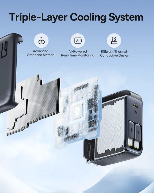 67W Fast Charging: Enjoy the convenience of powering up two devices at the same time! This 67W USB C charger block comes with 1 additional type c port and 2 retractable cable, allowing you to power up three devices at once! It can charge your MacBook Pro 14 to 43% in 30 minutes.