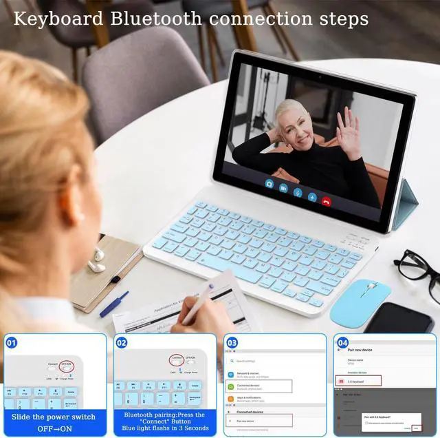 Multi-function ConfigurationAndroid portable tablet has a 2-in-1 working mode and is comes with a keyboard, wireless mouse, stylus and foldable protective case. You can enter text directly using a stylus, or you can type comfortably using the keyboard, two ways, one-touch convenience, easy response to various scenarios, making your work and study get twice the result with half the effort.