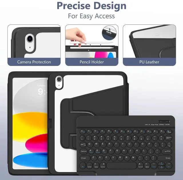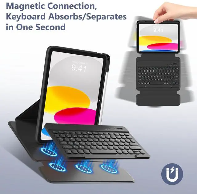 Detachable Wireless Keyboard This iPad 10th Generation Case with Keyboard is strong magnetic so it can be easily repositioned