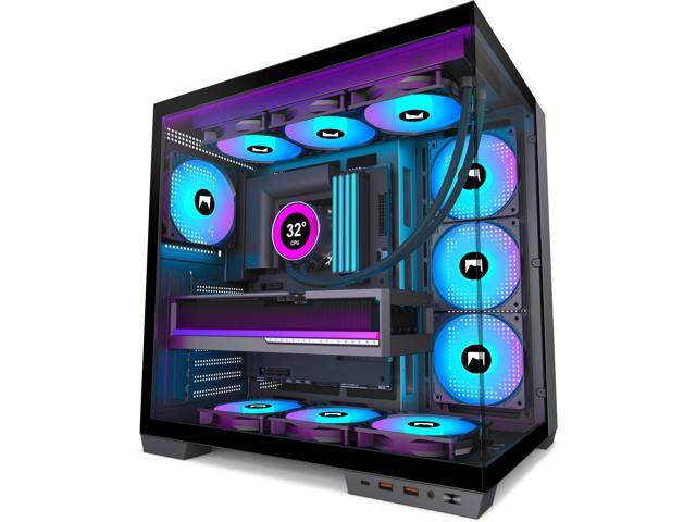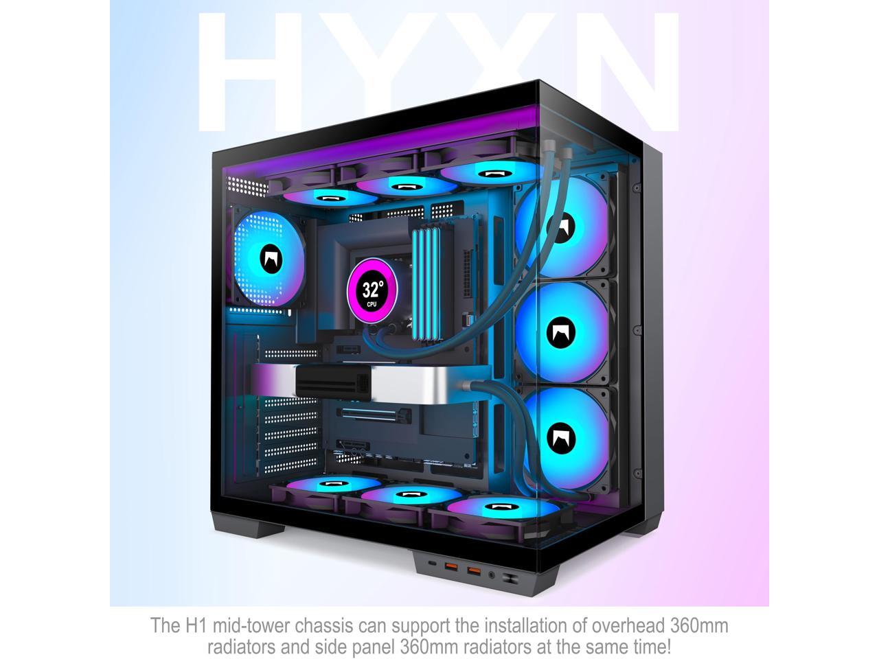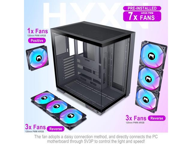 HYXN H1 HYXN ATX PC Case - Pre-Installed with 7 PWM ARGB Fans - Dual Cavity Mid-Tower PC Gaming Case - with Type-C - Can Hold up to 3X 360mm heatsinks simultaneously (Black, H1)