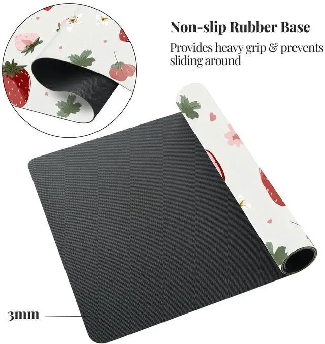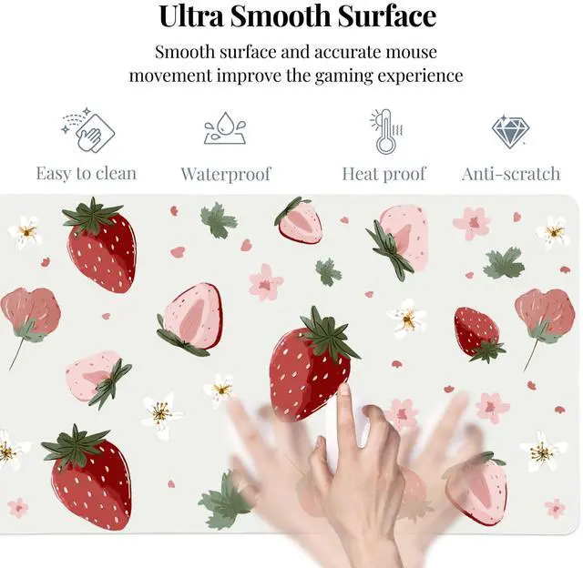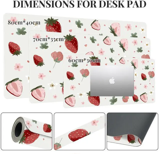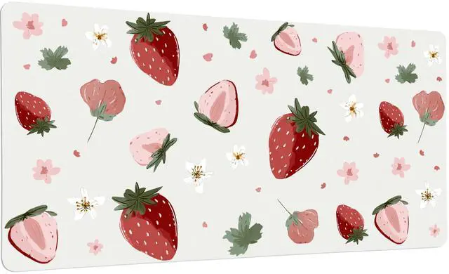 Idocolors Strawberry Desk Mat, Cute Extended Gaming Keyboard Mouse Pad, Large Office Desk Cover Mat Pad Deskmat, Non-Slip Leather Home Office Desk Mat Protector 31.5" × 15.7"
