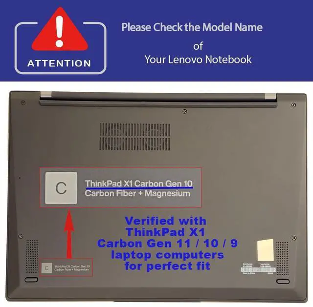 Designed to perfectly fit the 2021 ~2024 Lenovo ThinkPad X1 Carbon Gen 9 / Gen 10 / Gen 11 series with Dimensions (Width x Length x Height) of 12.43 x 8.76 x 0.6 inch ( 315.6 x 222.5 x 15.36 mm )