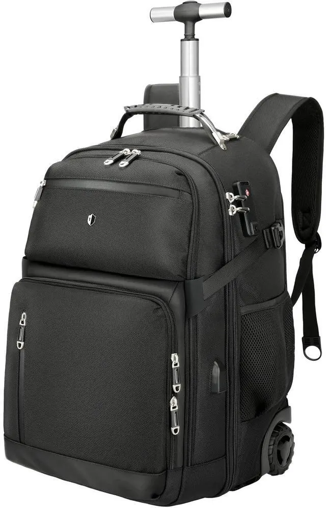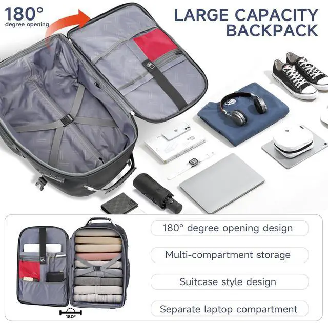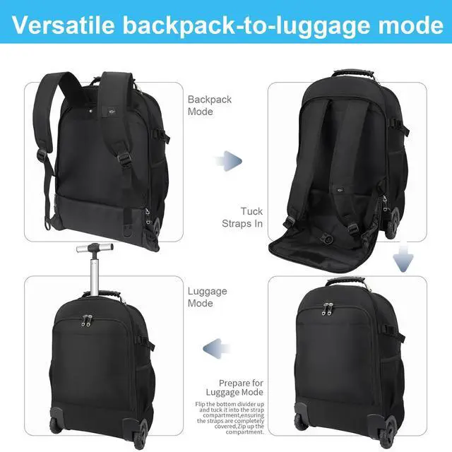 MULTIPLE POCKETS & DUAL ANTI-THEFTSWICKY RICOOI carry on backpack with wheels has 8 pockets, including 2 front pockets, 1 large main compartment, 1 padded laptop compartment,2 Document pocket,1 Water Resistant side pocket ect. lt features a TSA-approved lock, High quality zipper, and USB Ports, making it ideal as a laptop backpack, business carry-on backpack, tablets, books and other essentials(Fits 16-inch laptop).