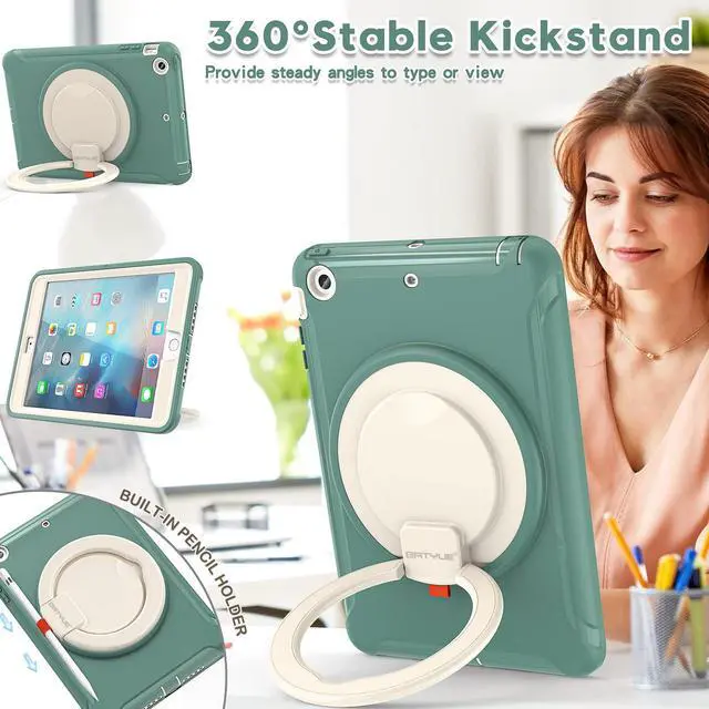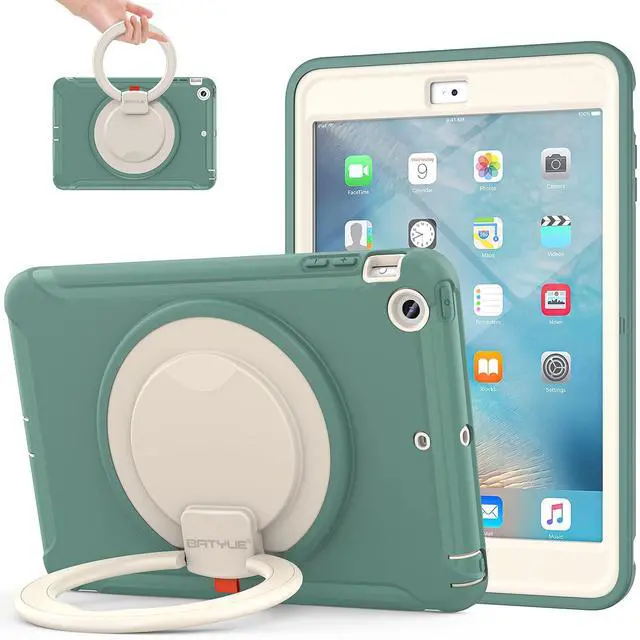 BATYUE iPad mini Case for iPad mini 1/2/3 Generation Heavy Duty Three Layer Hybrid TPU+PC Full-Body Rugged Protective Case with Handle Grip/360° Rotating Stand for Kids Girls Boys - EmeraldGreen