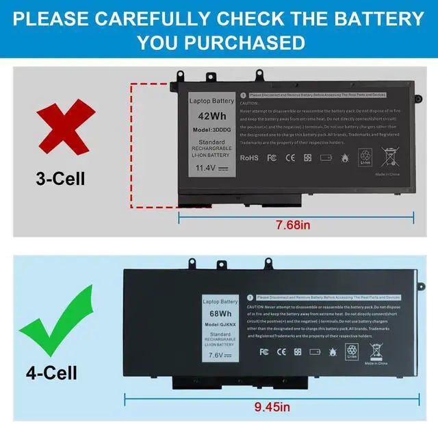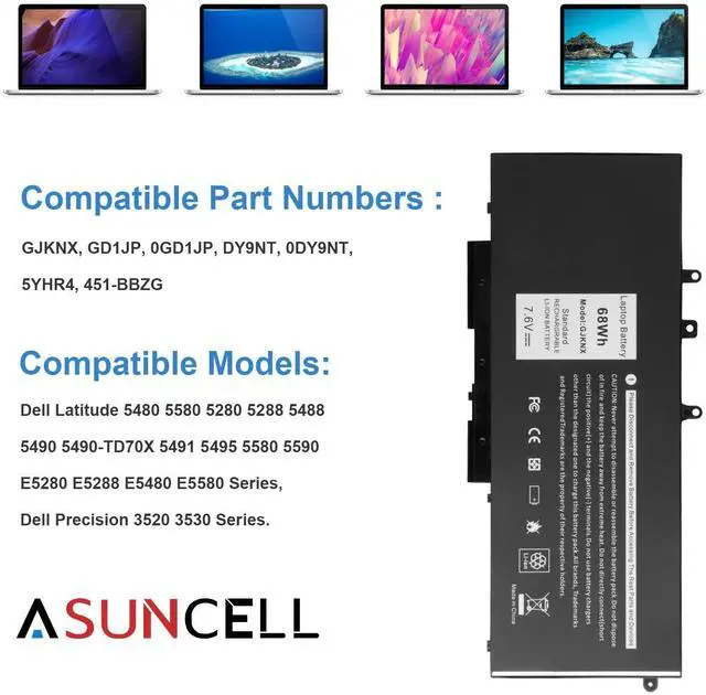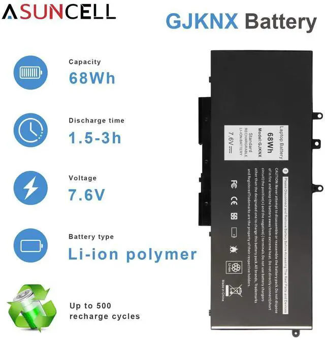GJKNX Battery for Dell - Asuncell laptop computer battery is made of Li-ion, 4-cells, 7.6V, 68Wh capacity. 100% Brand new. Up to 500 recharge cycles over the life of the battery.