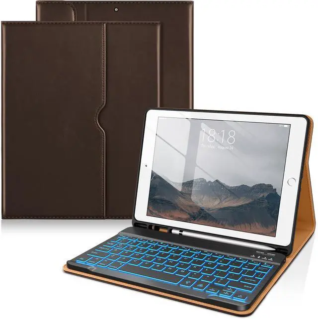 DTTO for iPad 9th/8th/7th Generation 10.2" Case 2021/2020/2019 with Keyboard, 7 Colors Backlit Wireless Detachable Keyboard Premium Leather Folio Cover with Pencil Holder & Pocket, Dark Brown