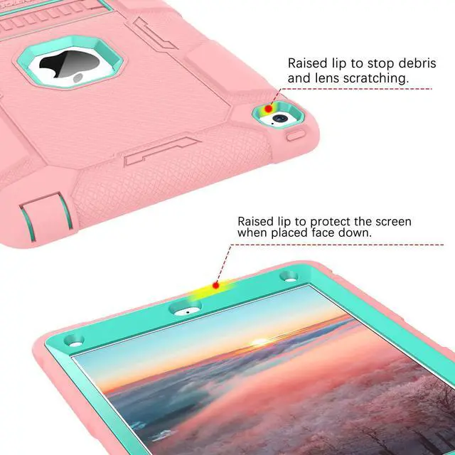 Hard PC Plastic front cover + Hard PC Plastic inner skin + Soft Rubber back cover. Provide full body protection for your iPad Air 2 to against any scratch, bump, finger marks, and dirt.