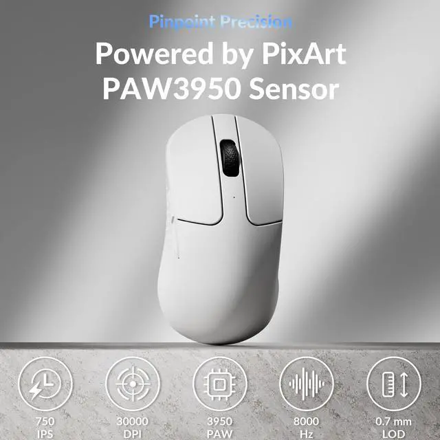 8000 Hz Polling Rate - Experience near-instant response and maximizes responsiveness with the blazing-fast 8000 Hz polling rate and advanced PixArt 3950 sensor. With up to 30,000 DPI and 750 IPS, it ensures ultra-precise tracking, smoother cursor control, and reliable accuracyengineered for competitive gaming and high-speed workflows.