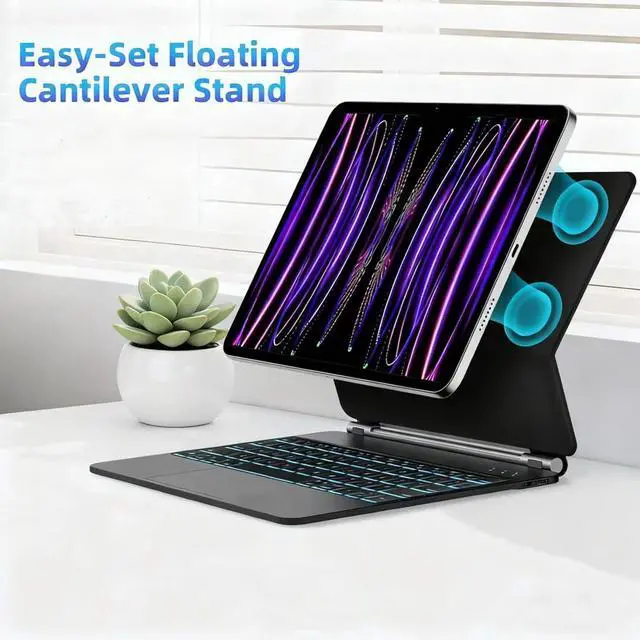 ^^ Lightweight and Protable Design Boasting a slim, lightweight profile, the keyboard protector is the ideal companion for on-the-go users who seek functionality without additional bulk. ^^ Floating Cantilever DesignInnovative and intuitive, the floating cantilever design of the keyboard protector allows for effortless adjustment to your preferred viewing angle. ^^ Sleek Transformation, Wherever You GoMagnetically morph your iPad into a sleek laptop within seconds. Perfect for on-the-go moments and unleashing creativity on your terms. ^^ Long-lasting BatteryThe 500mAh long-lasting battery provides up to 200 hours of operating time and 90 days of standby time on a single charge.