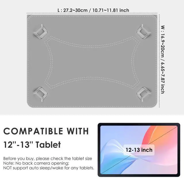 Wide Compatibility: Universal ALL 12 - 13 inch tablet case compatible with TECLAST, QDDQ, Blackview, GOTOWOD, aiprotablet, Azeyou, DOOGEE, Veidoo, HNVHNV, COLORROOM, XINHENGTAI, HUIHUANG, DOOGEE, Relndoo, Headwolf 2025 Android Tablets. ( NOT support auto Sleep/Wake) ^^