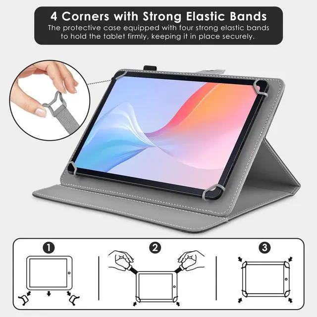 Magnetic Closure: 12-13 inch tablet case equipped with strong elastic band buttons on 4 corners to hold the tablet firmly, keeping it in place securely; Magnetic button closure design ensures cover securely closed. Works with or without the keyboard (NOT included the keyboard).