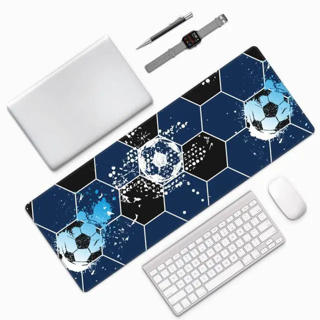 Famame Laptop Mouse Pad Abstract Grunge Soccer Ball Pattern Desk Mat with Stitched Edges 31.5X 11.8 inch Non-Slip Large Keyboard Rubber Writing Table Mat for Office Home