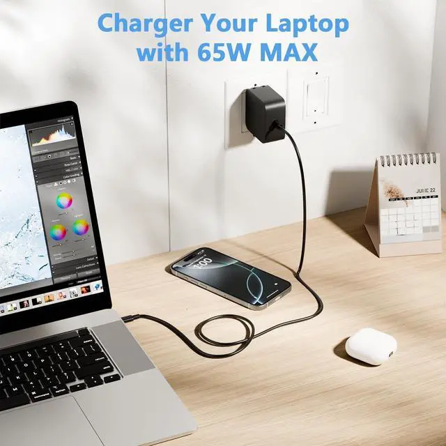The 65W USB C Charger include numerous safety mechanisms, including protection against short circuiting, over voltage, over current, and internal overheating. It is your perfect replacement or spare power adapter for your laptops.