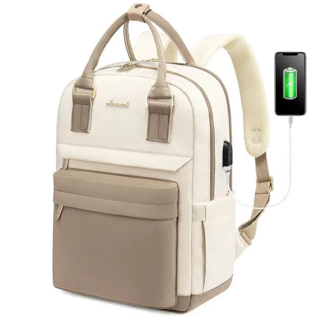 MULTI COMPARTMENTS Total 4 compartments: 1 separate laptop compartment, 1 main compartment and 2 front compartments provide multi-functional for your computer, A4 folder, books, clothes, etc. ^^ LAPTOP PROTECTION - The dedicated laptop compartment fits up to 14 laptop, come with a elastic strap can offer the optimal protection for your laptop. Tablet slot fits 12.9" iPad. Great idea for someone with multiple electronic devices. ^^ ON-THE-GO CONVENIENCE With a luggage strap on the back, it allows the backpack to securely fit on the handle of a rolling suitcase - ease the burden in your journey. Back hidden pocket sits up against the wearers body. Its difficult to steal your valuables without you feeling it. Let's travel. ^^ USB CHARGING PORT With inside charging cable and outside USB port, the backpack provides a more convenient and easier way to charge your devices. No need to keep power bank on the hand, make life easier. ^^ DURABLE & WATERPROOF LOVEVOOK backpack made of high density nylon fabric, the treated material makes the backpack stronger and water resistant.