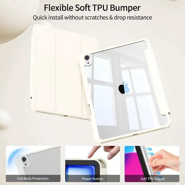 Full Protection The HD Clear hardshell back cover with flexible TPU bumper provides excellent protection for your iPad against scratches and impacts while offering a comfortable grip and premium look, showcasing the original beauty of your devicePlease tear off the film inside and outside the back shell