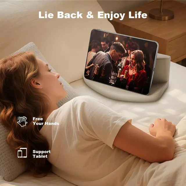 Phone Slumping: pillow phone holder for bed Supporting your device at a comfortable height, aligns it with the screen, poor posture, effectively reducing pressure on your cervical spine, and your spinal health. Enjoy a healthier and more comfortable viewing experience