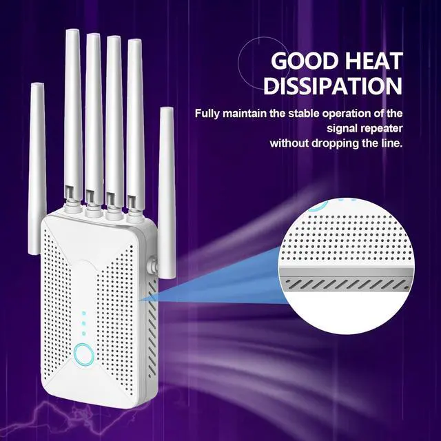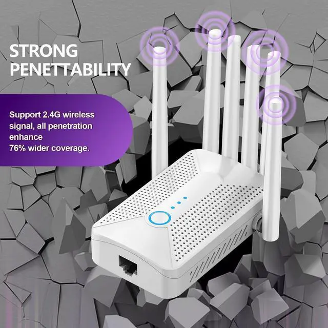 By adopting 2.4G (300Mbps) technology, the network connection becomes more stable, ensuring that all internet needs such as video, gaming, and browsing are met. ^^ Wifi extender supports dozens of devices, including smartphones, gaming consoles, home assistants, and Wi-Fi devices like Google Chromecast, without sacrificing speed or stability. ^^ Wifi extender It's very easy to set up; you just need to press a button and connect to the WiFi extender through WPS. ^^ Equipped with six omnidirectional antennas, it ensures no WiFi blind spots and has a coverage area of up to 10, 000 square feet, providing robust and reliable network connectivity for the entire household and even outdoor spaces.