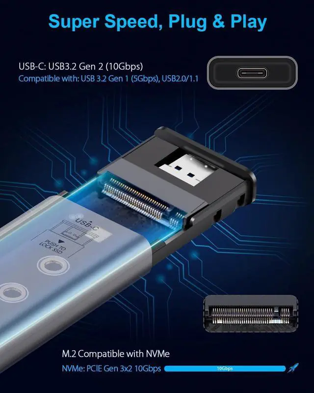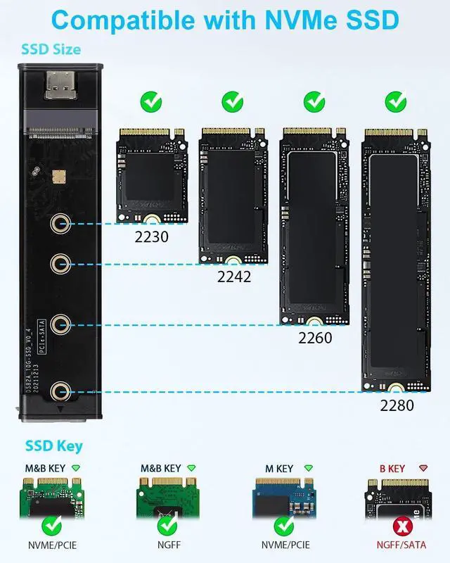 SSD Size Compatibility: Works with M. 2 NVMe SSDs in 2230/2242/2260/2280 sizes, M-Key & B&M Key. Use it for backups, data migration, or turning old SSDs into portable storage. ^^