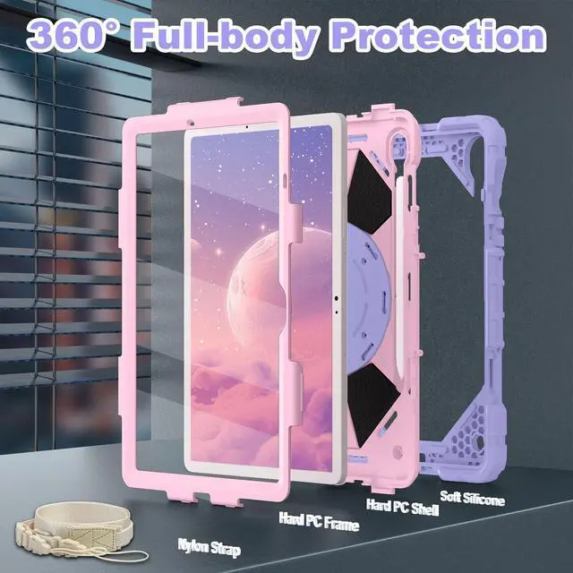 CompatibilityDesigned for samsung galaxy tab s10 lite/s10 fe 10.9 inch 2025(SM-X400/ X406B/SM-X520/X526B/X528U)&samsung galaxy tab s9 fe 10.9 inch 2023(SM-X510/X516B/X518U)&samsung galaxy tab s9 11 inch 2023(SM-X710/X716B/X718U). Please check your tablet to avoid the incorrect model number. ^^ 360 Rotating Stand & Folding HandleGalaxy tab s10 fe/s9 fe case with a multifunction handle that also rotating 360 and folds 180 to give you multiple angles between 30-80 degrees of horizontal or vertical orientation for easy viewing, typing or drawing. ^^ Pencil Holder & Adjustable Shoulder StrapSamsung tab s9 fe case with pencil holder. Also offers adjustable shoulder strap, allow you use or carry much easier, perfect for a variety of people and occasions.