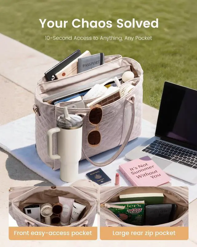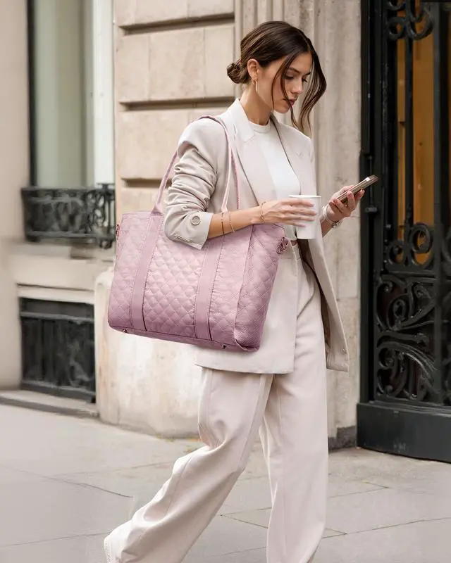 ^^ Versatile Laptop Tote Whether you're a teacher bag, nurse bag, or business professional bag, this work bags for women easily adapts to various life situations. Whether carried by hand, over the shoulder, or across the body, the flexible carrying style allows you to easily adapt to various situations, including work, school, and travel, ensuring you always have a unique personal style. ^^ Safe and Convenient DesignDesigned for convenient travel, this laptop bag features an integrated luggage cover that easily attaches to a luggage trolley, keeping your hands free.